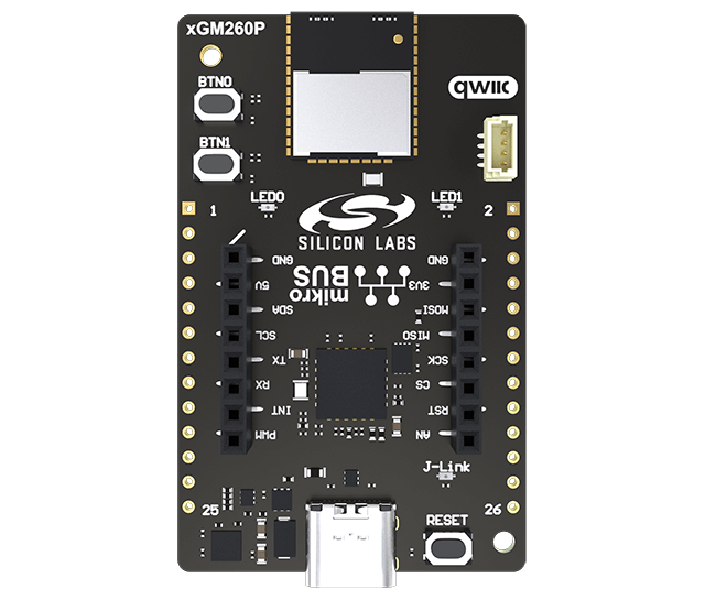The MGM260P Explorer Kit is a small form factor development and evaluation platform based on the EFR32xGM260P Module. The Explorer Kit is focused on rapid prototyping and concept creation of loT applications for 2.4 GHz wireless protocols including Bluetooth LE, Bluetooth mesh, Zigbee, Thread, and Matter.