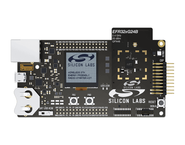 The EFR32xG24 Explorer Kit is a small form factor development and evaluation platform based on the EFR32MG24 System-on-Chip. The EFR32xG24 Explorer Kit is focused on rapid prototyping and concept creation of IoT applications for 2.4 GHz wireless protocols including Bluetooth LE, Bluetooth mesh, Zigbee, Thread, and Matter.